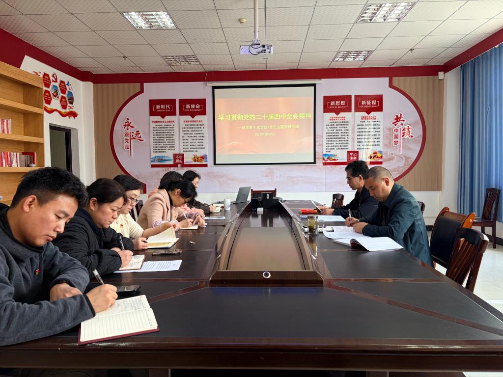 3月30日,机关第十党支部以 “学习贯彻党的二十届四中全会精神”为主题开展了主题党日活动。活动由支部书记刘坤祥主持,支部全体人员参加。