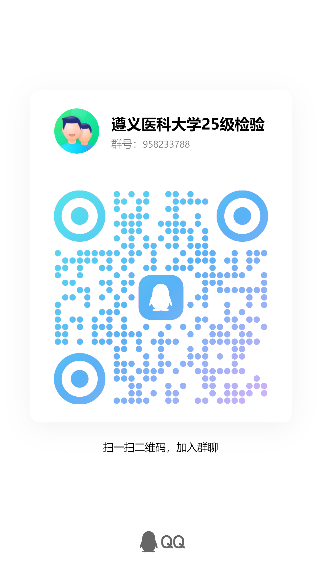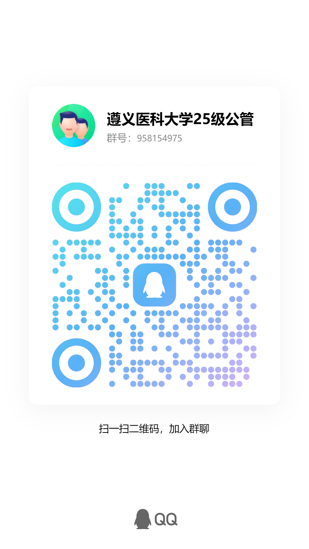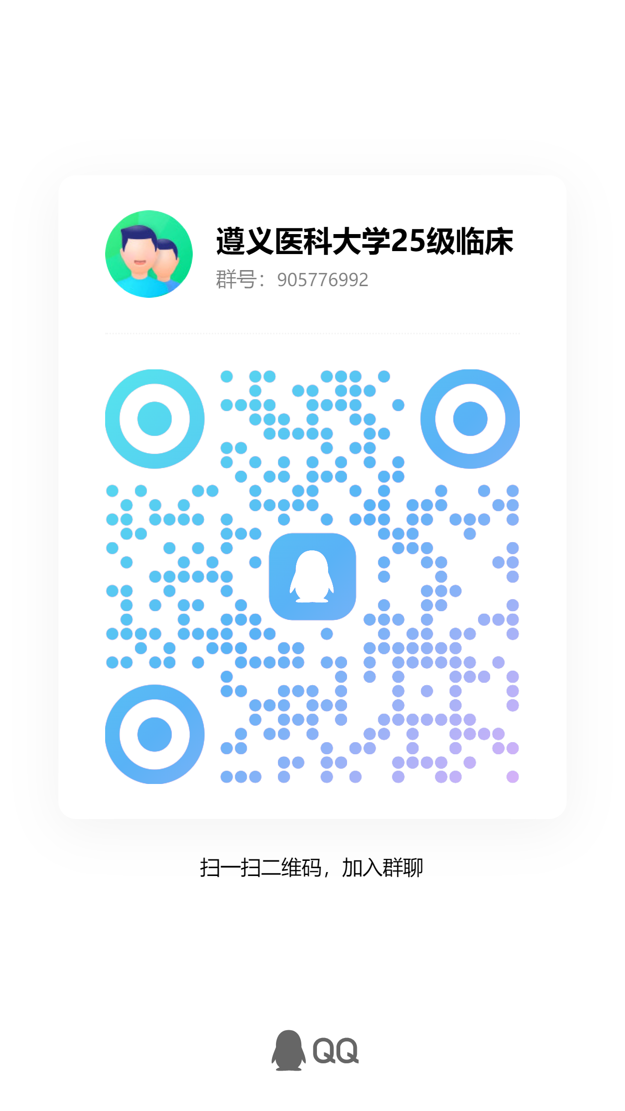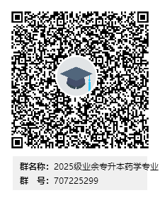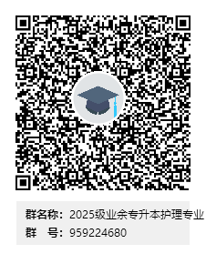 恭喜你通过2024年成人高考并被遵义医科大学继续教育学院录取,同时被安排在校本部学习,报到及后续教学安排请务必关注“遵义医科大学继续教育学院”微信公众号及官方网站。为方便管理,请你加入2025级专升本对应专业的QQ群(群号附后,申请加群时务必备注本人真实姓名)。