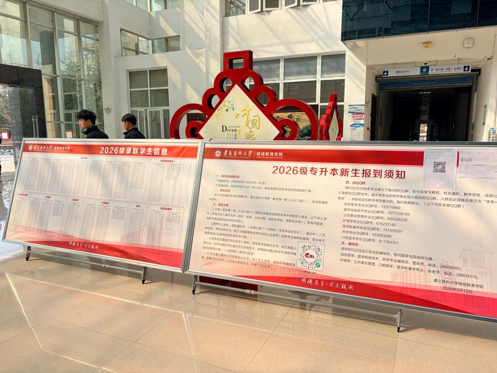 此次新生报到及开学典礼的顺利举行,标志着我校2026级新生的求学之旅正式启航。从报到工作的细致筹备到入学仪式的内涵打造,学院始终秉持以生为本理念,用心抓实每一项服务、做好每一个环节。未来,学院将持续优化教学管理与服务保障,为广大学子搭建优质学习平台,助力同学们克服工学矛盾、潜心求学,在医学领域笃学精进、锤炼本领,将所学所获转化为职业发展动力,成长为德才兼备的医疗卫生专业人才,以过硬能力为医疗卫生事业发展贡献遵医力量。(一审:何雪,二审:张先杰,三审:刘坤祥;撰稿、摄影:肖鹏)